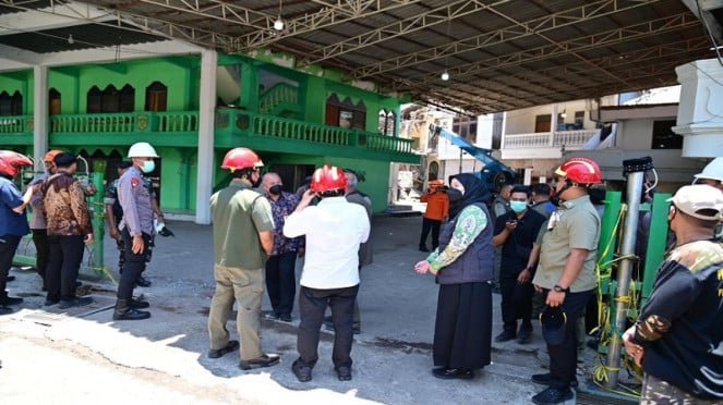 Jefe de BNPB Suharyanto junto con el Ministro de Coordinación para PMK Pratikno revisó los Ponpes Ambruk