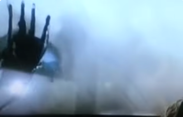 Pues depende del momento de la escena que veas, porque realmente hay dos planos distintos con la mano a diferente altura: en uno, el más conocido, Winslet pone la mano a media altura del cristal, pero en el plano siguiente está notablemente más abajo. En el fragor del momento y la calentura juvenil nadie se dio cuenta, pero con frialdad se puede ver claramente. Ups.