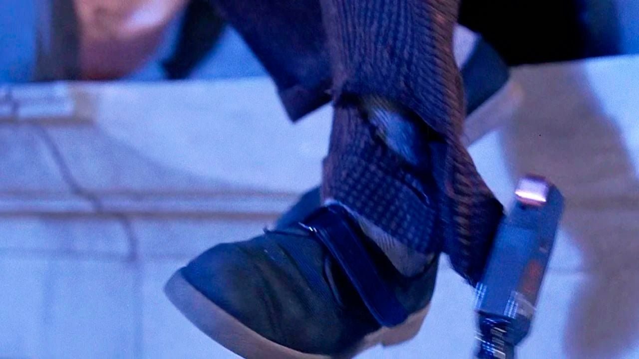 En la recta final de la película hay un detalle en el atuendo de Doc Emmett Brown (Christopher Lloyd) que los fans más observadores señalaron como otra inconsistencia: cuando el científico está colgado de la torre del reloj del ayuntamiento para conseguir que el rayo que saben que va a caer esa noche pase a través de los cables eléctricos y dé al DeLorean la energía necesaria para impulsarse hacia el futuro, el cable acaba enganchándose en su zapato en un tenso momento. Sin embargo, aunque todos recordamos la escena, no es habitual fijarse en que el zapato, que vemos en primer plano, es un zapato con solapas de velcro. Y mucho menos habitual es saber que el sistema de los velcros en el calzado fueron introducidos por primera vez en 1968 por la marca Puma, mucho después del año 1955 en que se encuentra el personaje en ese momento.