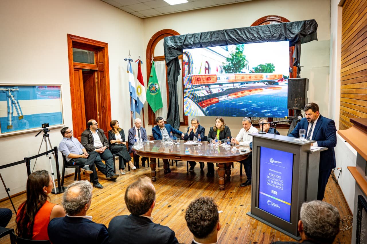 Tras la apertura a cargo del Presidente del Concejo, Gonzalo Pérez, el intendente Gino Chiapello brindó su discurso, donde destacó los principales ejes de gestión y los proyectos que se impulsarán desde las distintas áreas del municipio.